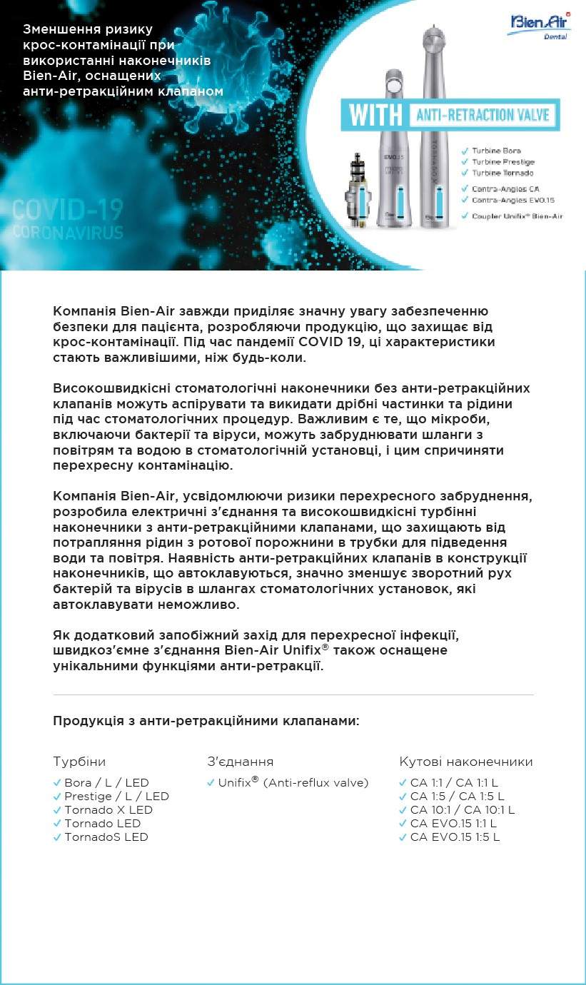 Зменшення ризику крос-контамінації при використанні наконечників Bien-Air з анти-ретракційними клапанами