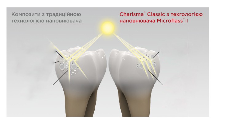 Charisma Classic - Це перший композит, створений на основі другого покоління технології наповнювачів Microglass®. Завдяки цій технології можна працювати одним відтінком матеріалу і отримувати хороші результати.