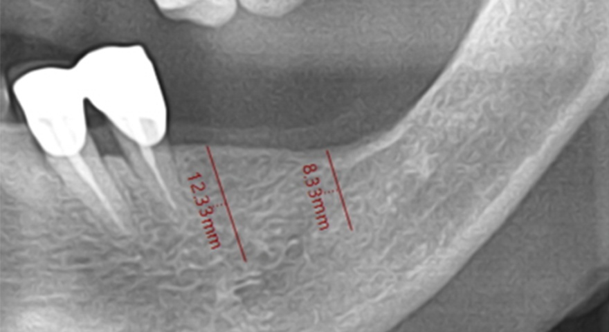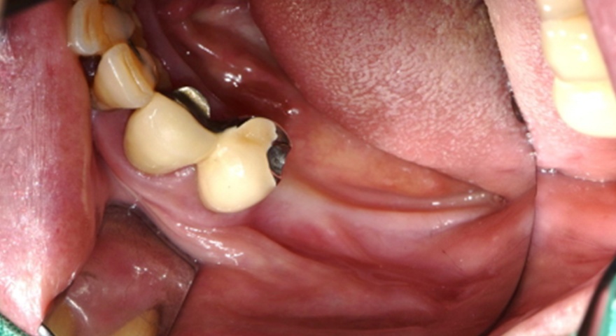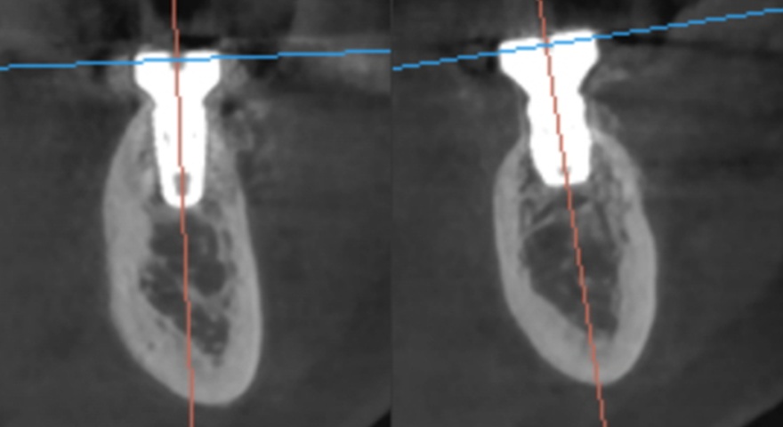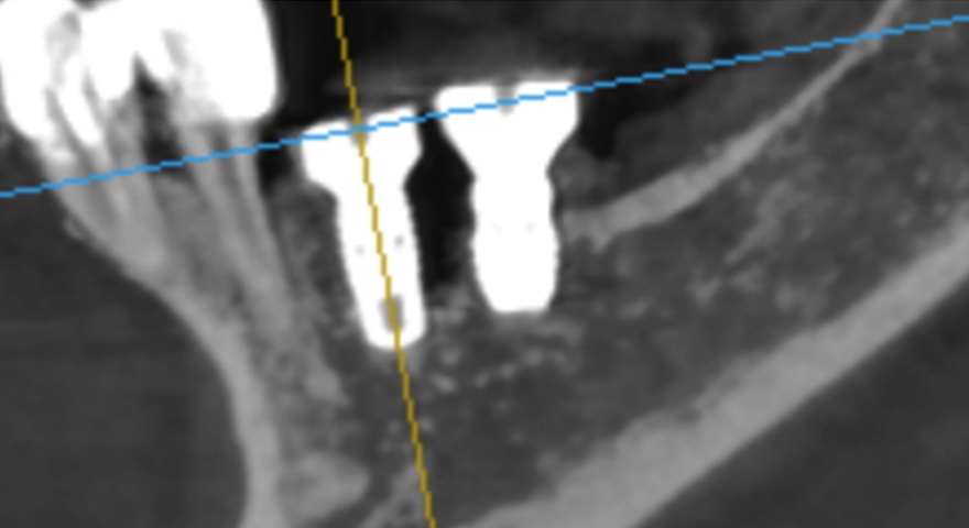 - Цей випадок показує вузьку установку імплантату в правій нижній щелепі.